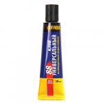 Клей универсальный особопрочный применяется для склеивания резины, кожи, дерева, пластиков, картона, ткани, керамики, пробки и прочих устойчивых к растворителям материалов, образуя при этом клеевой шов, устойчивый к морской и пресной воде, не вызывающий коррозии стали и алюминиевых сплавов и сохраняющий свои свойства в широком диапазоне температур от -50 °С до +70 °С. Цвет: прозрачный.