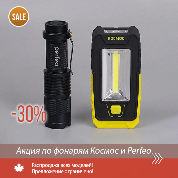 Мы запустили тотальную распродажу на весь ассортимент фонарей КОСМОС и Perfeo.